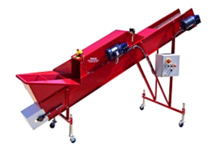 The Peat Fluffer is ideal for decompressing or "fluffing" 3.8 cubic bales of compressed peat or pre-mix media. The fluffer's rotating tines uniformly break up chunks of peat as they pass from the loading area to the discharge at the top of the incline. The optional watering bar enables the desired amount of moisture to be added and helps to maximize the yield of the bale. Optional adjustable caster wheels allow the fluffer to be easily moved to service multiple filling machines. Consistent media, increased compressed bale yield, and labor efficiency combine to make the peat fluffer a valuable tool for the grower who uses 3.8 cubic foot bales.
