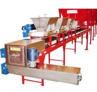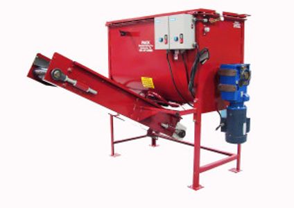 The batch mixer is designed for uniform blending of a wide variety of materials, such as peat, bark, soil, sand, chemicals and fertilizers. The ribbon blender channels material from the hopper sides through the center, resulting in a quick even blending and easy material removal through the center discharge hatch. The direct-drive power transmission is more efficient and eliminates the maintenance problems of chains and sprockets. The mixer comes with an integrated incline out feed conveyor that has a direct drive gear reduced motor and can be folded up out of the way when not in use.